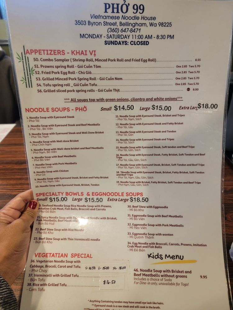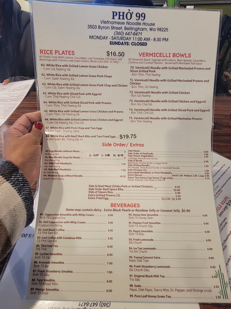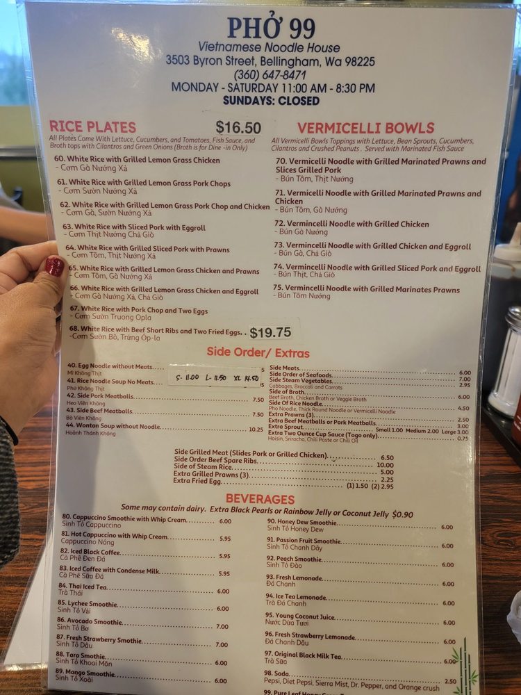 If you're looking for authentic Vietnamese cuisine in Bellingham, Pho 99 is the place to be. Located at 3503 Byron St, this family-owned restaurant offers a wide variety of dishes, with their flavorful pho being a standout favorite. The broth is simmered overnight, resulting in a rich and delicious flavor. Customers rave about the friendly service and clean ambiance, making it a great spot for lunch or dinner. Don't miss out on their BBQ pork plate with fried spring rolls or the Banh Mi sandwiches. Plus, they offer a loyalty punch card for repeat customers. Overall, Pho 99 is a must-visit for delicious Vietnamese fare in the Pacific Northwest.